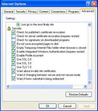 The latest versions of Internet Explorer include some great new security improvements. For this tweak, I will talk about enabling the feature to not save encrypted files to disk. This is a valuable feature. When you connect to a site that is encrypted the data sent over the network is encrypted. Your browser has the key to decrypt and display the information. Why give someone a chance to crack the encryption? If you don't allow IE to save it to disk then it is nearly impossible for someone else to be able to get that file and use brute force to crack it.