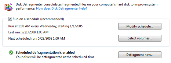 The disk defragmenter in Windows Vista was redesigned. I personally do not like the new stripped down interface but one welcome addition is easy defrag scheduling.