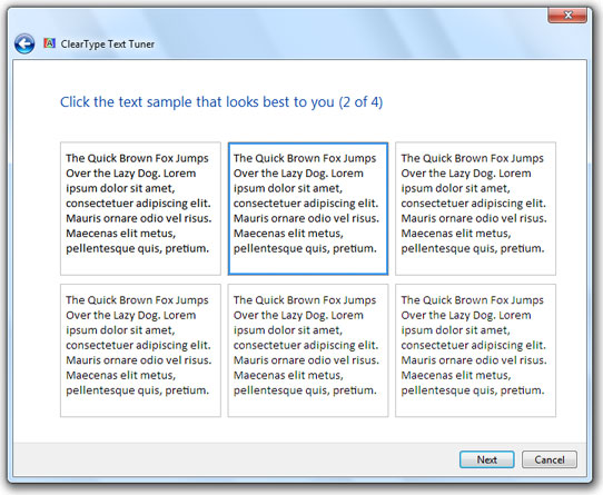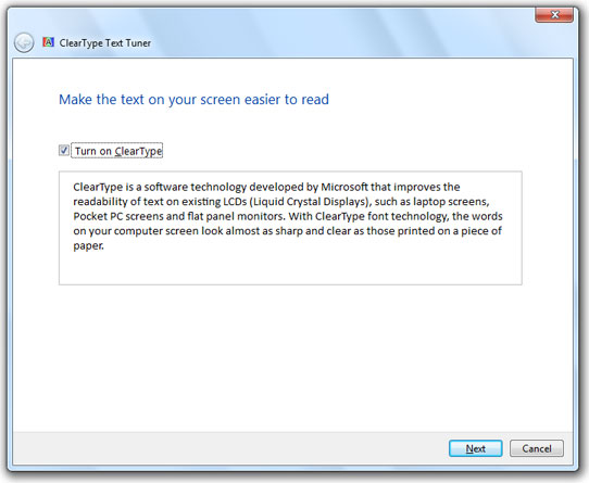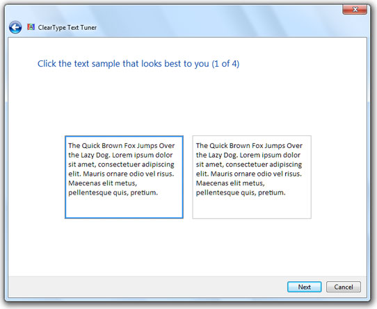 Everyone has a different idea of good font smoothing. What is nice and smooth to you may be blurry to someone else. That is why Microsoft included the ClearType Text Tuner in Windows 7.