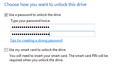 Next, pick how you want to protect the drive. Set a password or use a smart card if your device has a smart card reader.