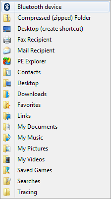 When you right click on an file or folder in Windows Explorer the default Send To menu contains only a few locations: