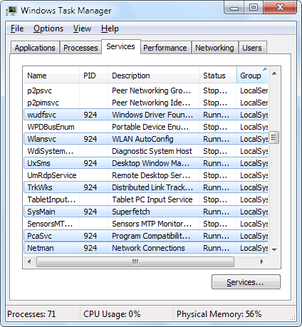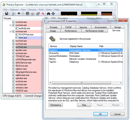 Task manager in Windows Vista and Windows 7 has been enhanced so you can easily see what services are running inside a host process such as svchost.exe.