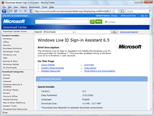 You will now be taken to your Web browser where you can select an online ID provider plug-in to use with Windows 7. Click on the plug-in you want to use.