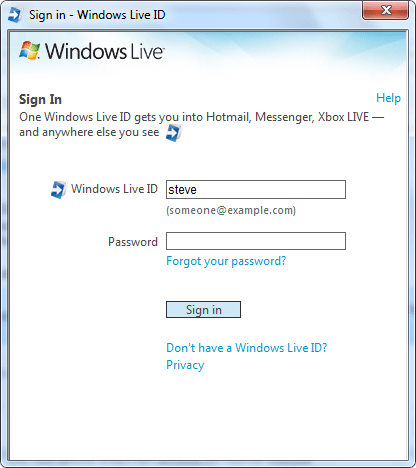 Type in your Windows Live ID credentials and then click Sign in.
