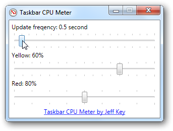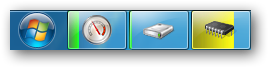 Taskbar Meters expand the Windows 7 taskbar beyond the static icon and dynamically update to show the utilization of system resources. Made up of three separate programs, Taskbar Meters show CPU usage, disk IO and memory utilization.
