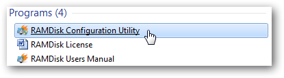 Then click on the Start Button and launch the RAMDisk Configuration Utility