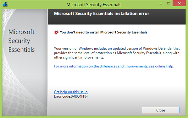 If you attempt to install Microsoft Security Essentials on Windows 8 the installer will politely tell you your computer is already protected.