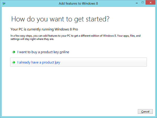 - Type in Add Features and select Add Features to Windows 8.