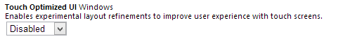 This will display the experimental settings and features screen. Scroll down until you find Touch Optimized UI and change the value from Automatic to Disabled.