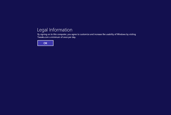Would you like to display an information or legal message to your users before they can login to Windows? "Do not shut down this computer," or how about, "By logging into this computer you are accepting the use policy. Unauthorized use is prohibited. " All of these message can be displayed with the help of a simple security policy edit.